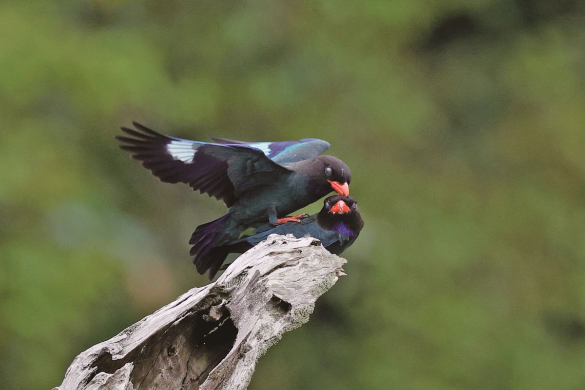 4月15日,明溪縣林業(yè)局野生動(dòng)植物保護(hù)站站長(zhǎng)肖書(shū)平在位于夏坊鄉(xiāng)的福建鳴溪省級(jí)濕地公園觀測(cè)到,兩只三寶鳥(niǎo)在枝頭“談戀愛(ài)”,它們?cè)谥︻^親昵依偎,在林間追逐嬉戲,在大片綠意中勾勒出靈動(dòng)的弧線,自在愉悅的鳥(niǎo)鳴輕拂枝葉。玩耍間隙,它們還住進(jìn)了志愿者搭建的人工鳥(niǎo)巢。