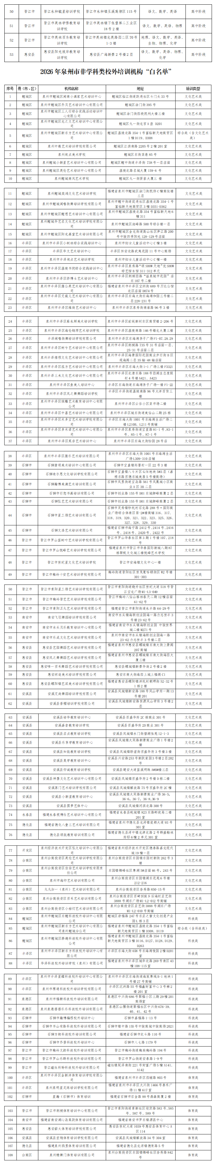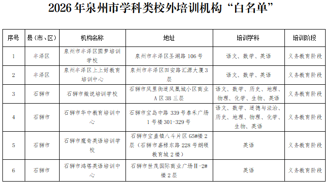 泉州2026校外培訓(xùn)機(jī)構(gòu)“白名單”出爐